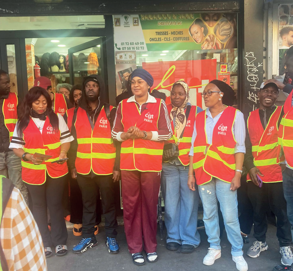 Depuis le 2 mars, un collectif de femmes, coiffeuses et esthéticiennes originaires de différents pays d’Afrique subsaharienne, soutenues et accompagnées par la CGT auquel se sont joints quelques hommes employés dans le salon ont décidé de se mettre en grève et d’occuper leur salon, un établissement situé au 65 du célèbre boulevard de Strasbourg. Par la lutte elles et ils entendent dénoncer la surexploitation qu’elles et ils subissent pour certaines depuis de nombreuses années. D’abord elles exigent le paiement intégral des salaires non versés depuis plusieurs mois. Mais elles dénoncent aussi des conditions de travail indignes : des journées de travail harassantes de 10 h du matin à 20 h pour une seule journée de repos hebdomadaire, l’absence de congés payés et une rémunération non conforme à la convention collective de la branche esthétique et cosmétique. De plus, c’est aussi leur santé qui a été mise à mal par l’utilisation de produits cosmétiques possiblement toxiques et non conformes aux normes en vigueur. Enfin, elles et ils entendent mettre fin au scandaleux racket dont celles et ceux qui ne détiennent ou ne détenaient pas encore de titre de séjour, à savoir la « restitution » en liquide de la somme mensuelle de 250 euros en moyenne par chacune et chacun à leur employeur. Ainsi, s’ajoute à la longue liste des infractions au droit du travail, un abus de vulnérabilité pesant sur celles et ceux en attente de régularisation. Nous y voyons des similitudes avec ce qui se passe parfois dans le nettoyage.